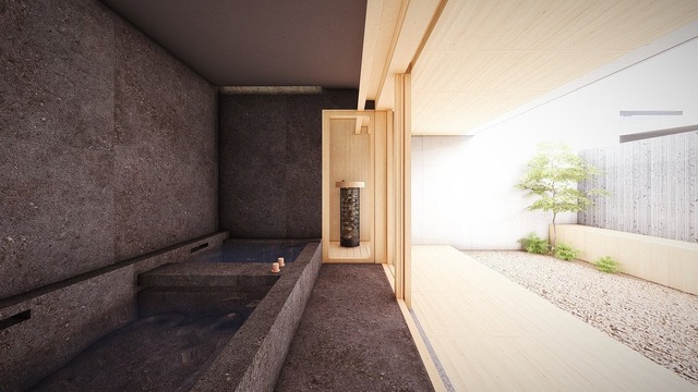 圍ラグジュアリースイート(2室): 室内105㎡ + プライベートガーデン160㎡。プライベートサウナまたは岩盤浴付き。1泊2食・2名利用で1名あたり108,900円~